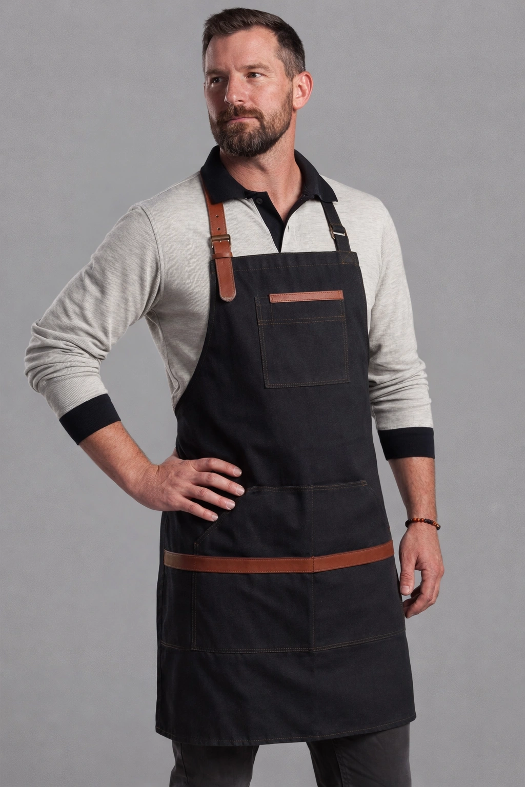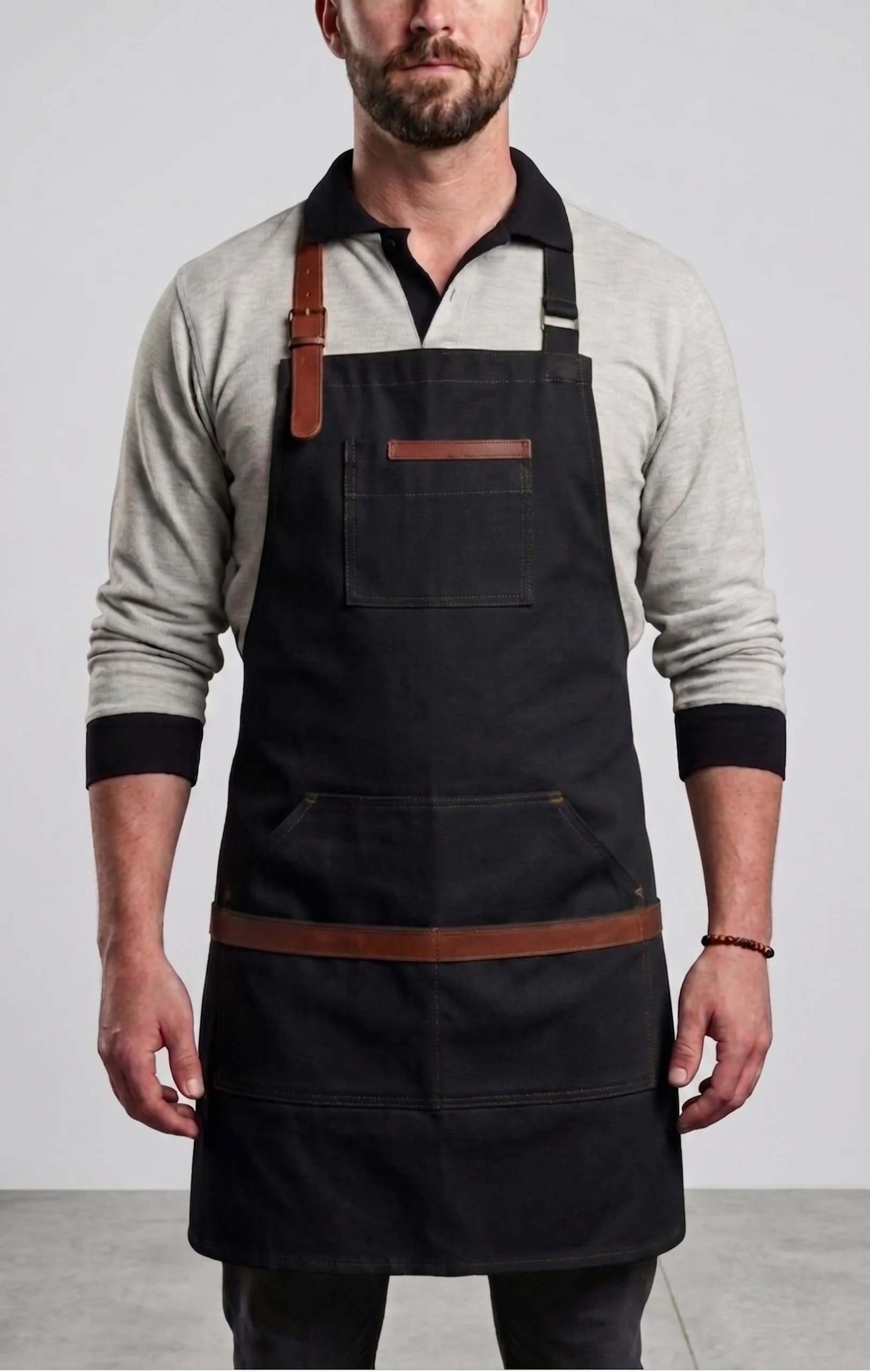 Barista önlüğü deri detaylı tasarımı ile özellikle cafe ve kahve konseptli işletmelerde tercih edilmektedir. Görsel olarak güçlü bir etki yaratır ve markanızın daha profesyonel algılanmasını sağlar.