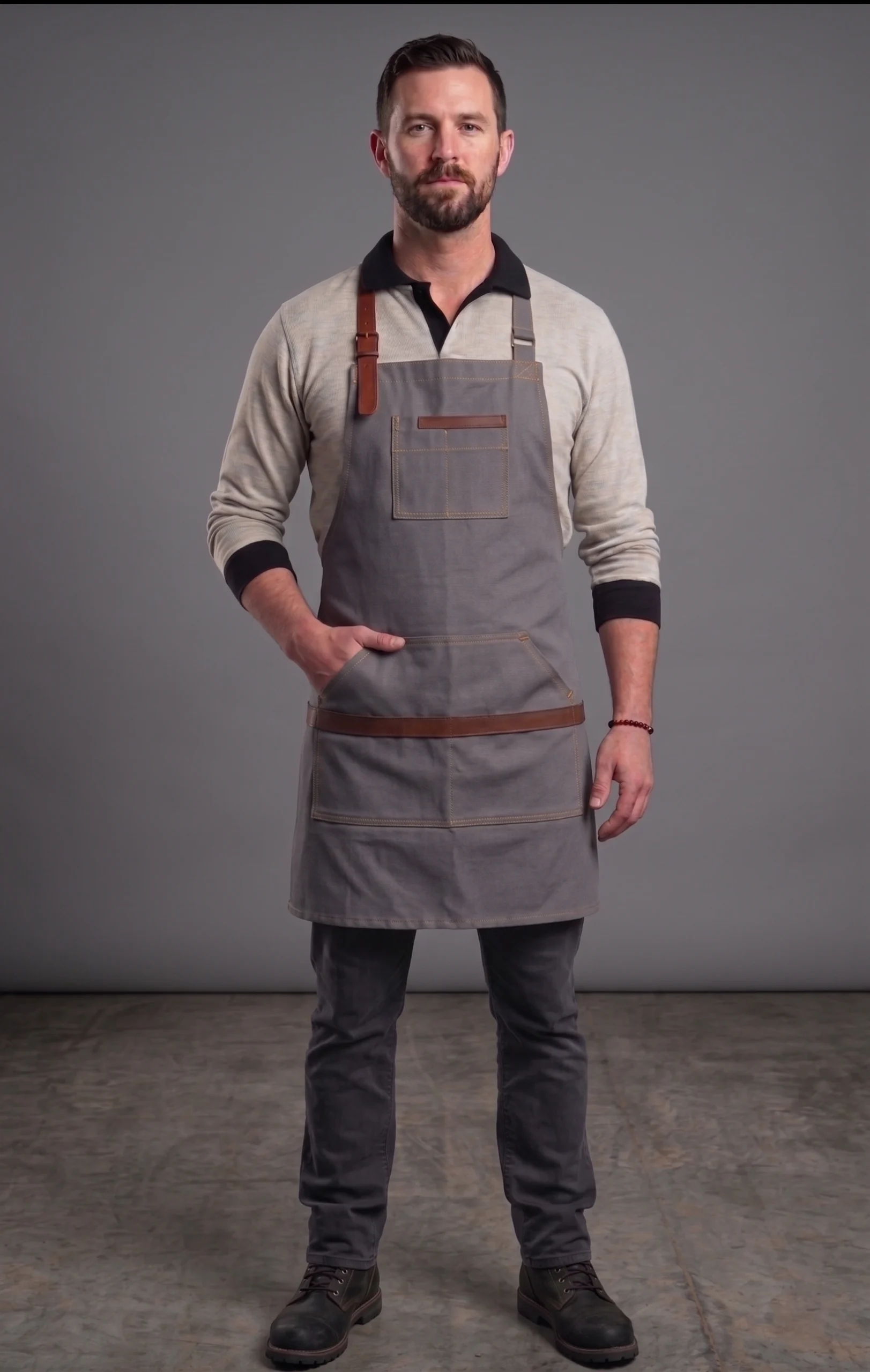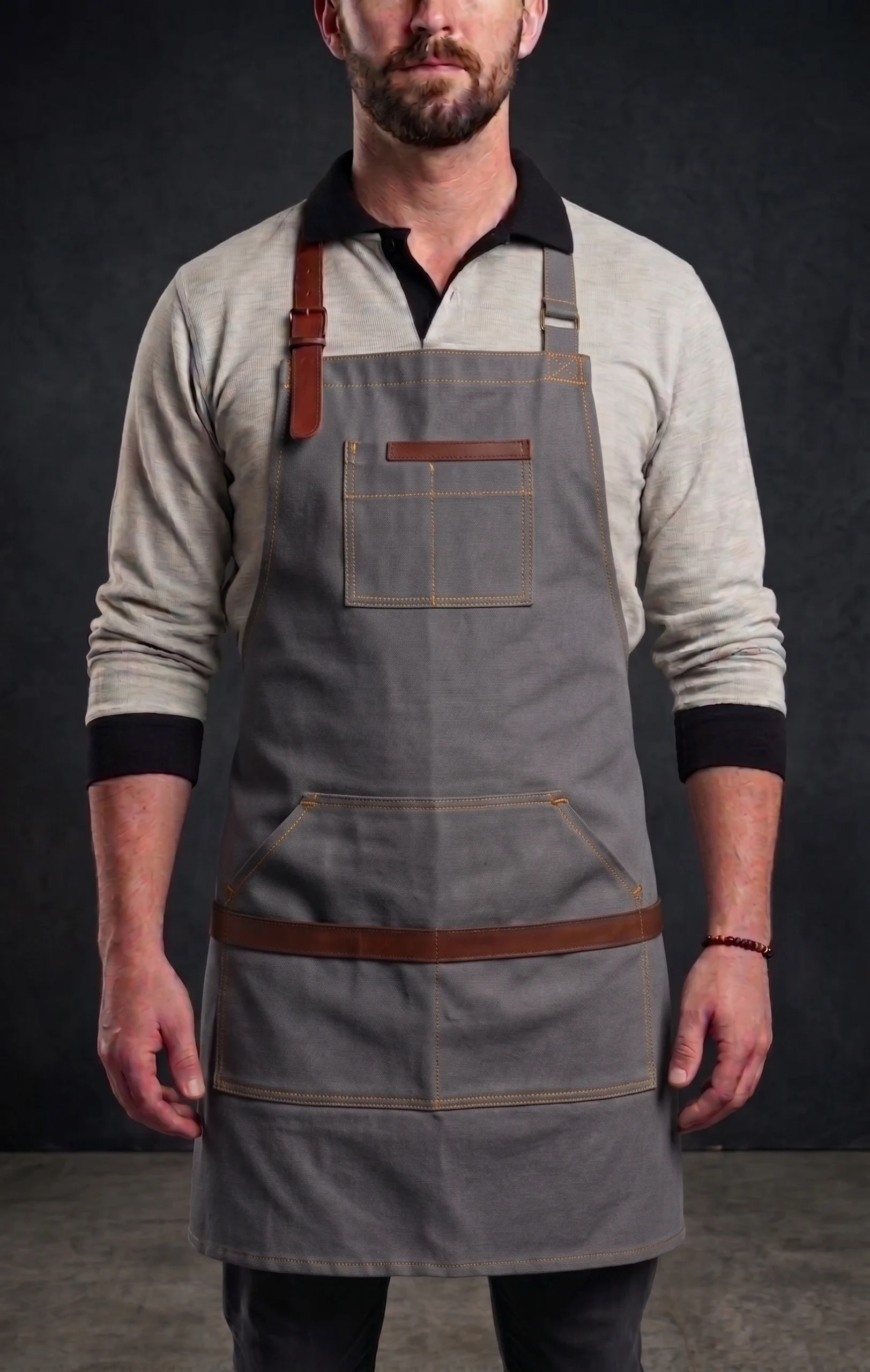 Barista önlüğü deri detaylı tasarımı ile özellikle cafe ve kahve konseptli işletmelerde tercih edilmektedir. Görsel olarak güçlü bir etki yaratır ve markanızın daha profesyonel algılanmasını sağlar.