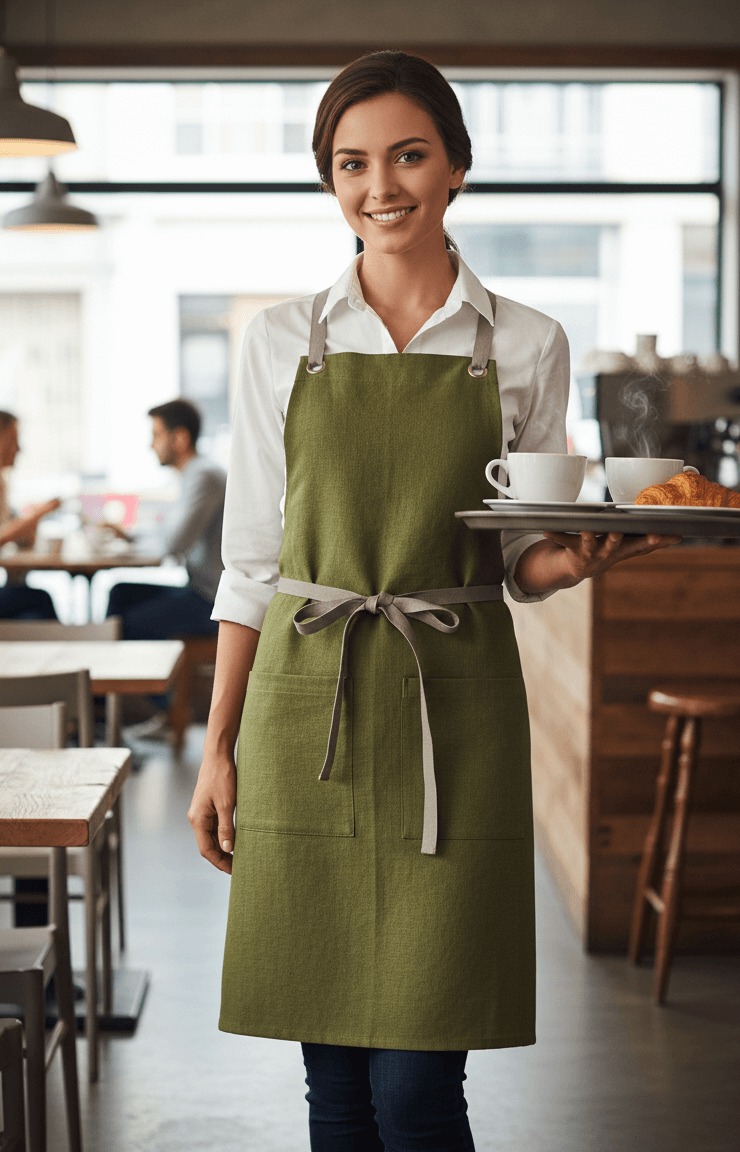 Barista Garson ve Servis Önlüğü BR01, Firma Logo baskılı ve Nakışlı Garson önlüğü, kafeterya önlüğü, şef aşçı önlüğü, cafe önlüğü en uygun fiyatlarla