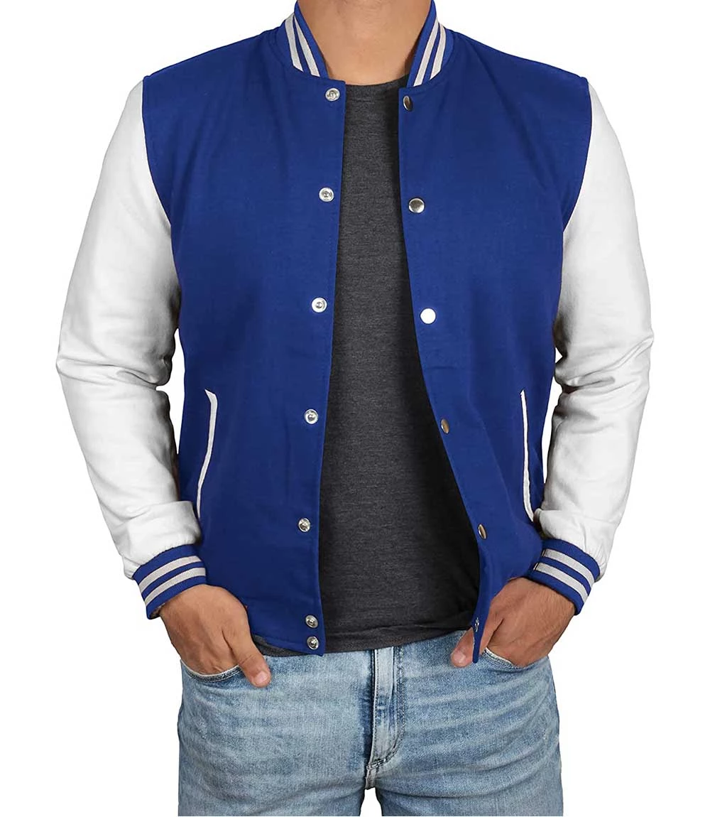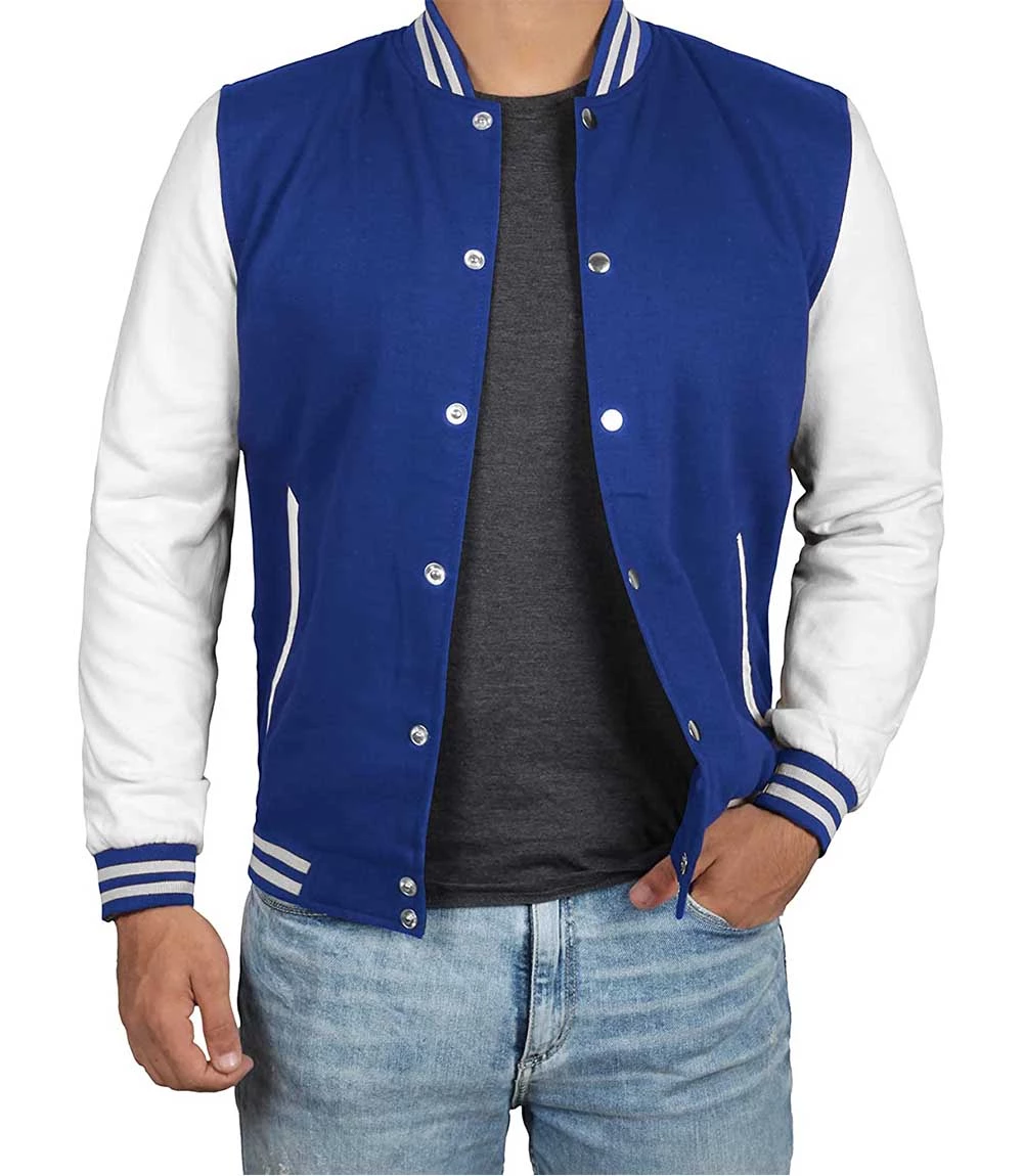 Mavi Beyaz Nakışlı ve Baskılı Kolej Montu, Varsity, Bomber Ceket PL30