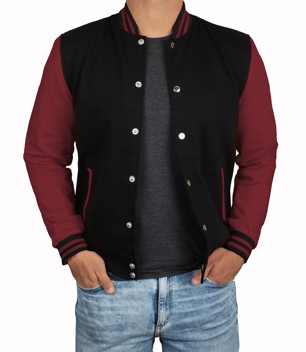 Siyah Bordo Nakışlı ve Baskılı Kolej Montu, Varsity, Bomber Ceket PL33