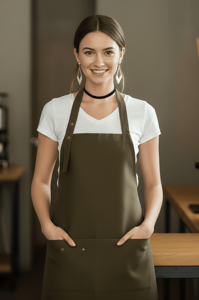 Barista Garson ve Servis Önlüğü BR01, Firma Logo baskılı ve Nakışlı Garson önlüğü, kafeterya önlüğü, şef aşçı önlüğü, cafe önlüğü en uygun fiyatlarla