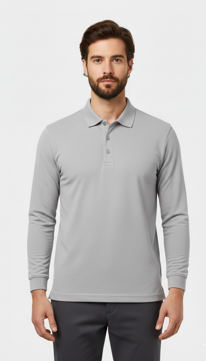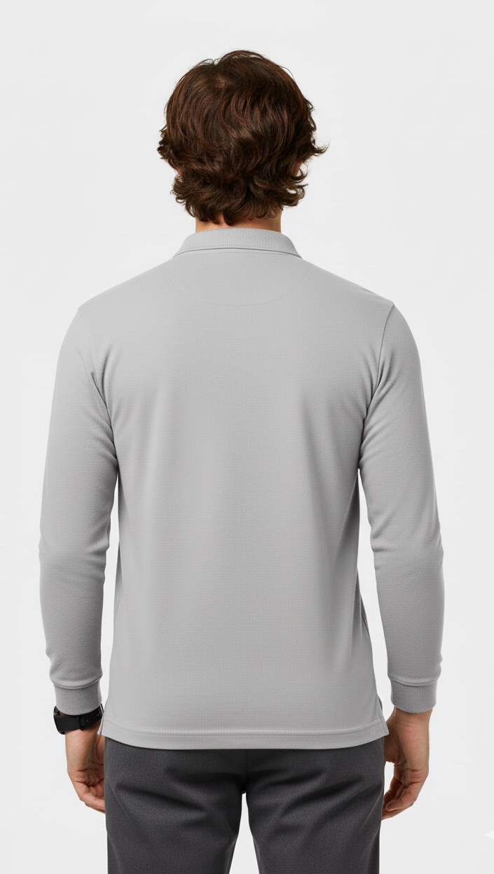 Uzun Kollu Polo Yaka Thsirt Gri
